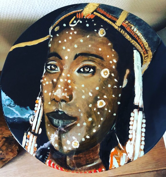 Op experimentele wijze probeer ik mijn nieuwe werk tastbaar te maken en heb ik dan ook twee van mijn favoriete handgemaakte tafeltjes meegenomen, als mensen mij vragen wat voor werk of ik doe!