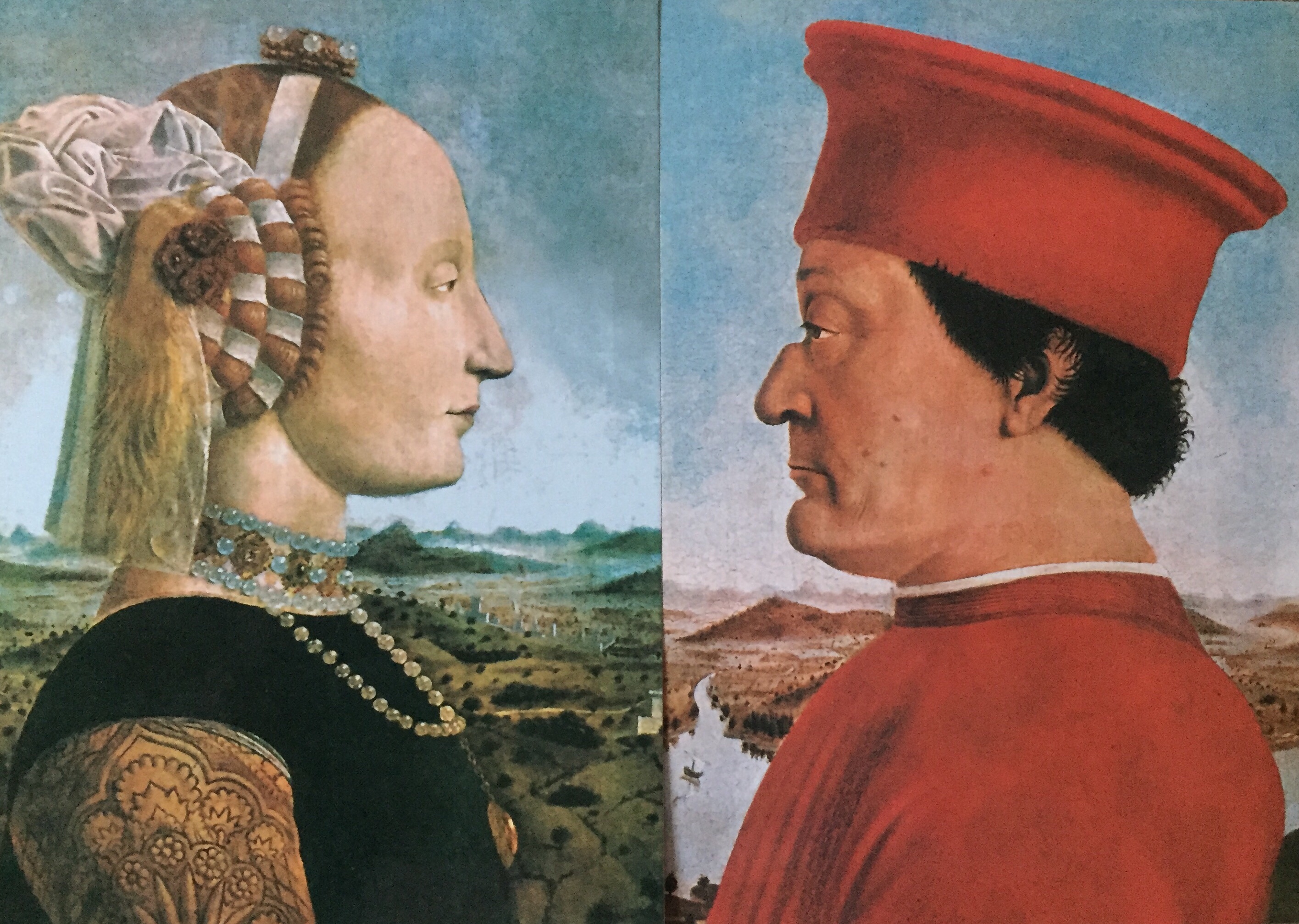Het beroemde portret van Federico en Battista door Piero della Francesca laat een symbolische wisselwerking zien: