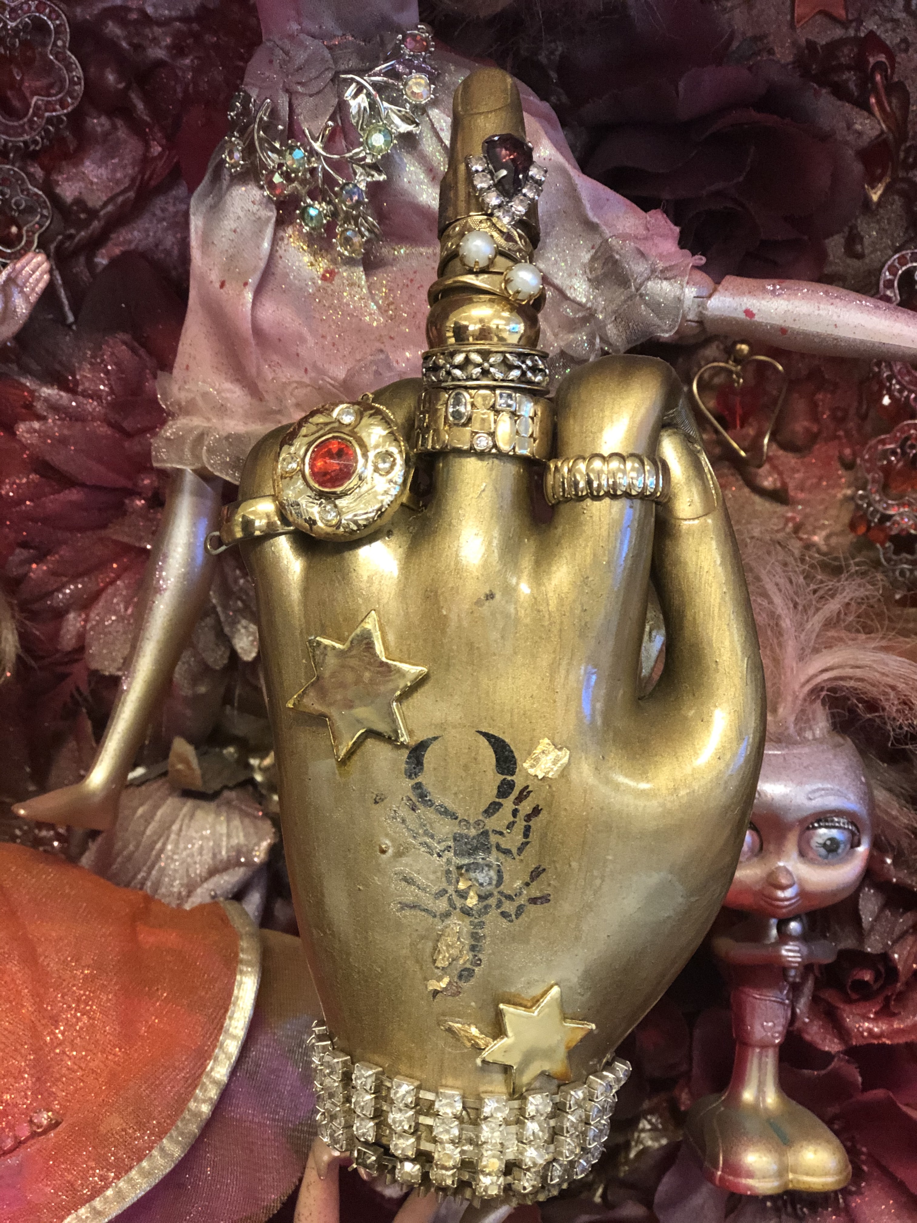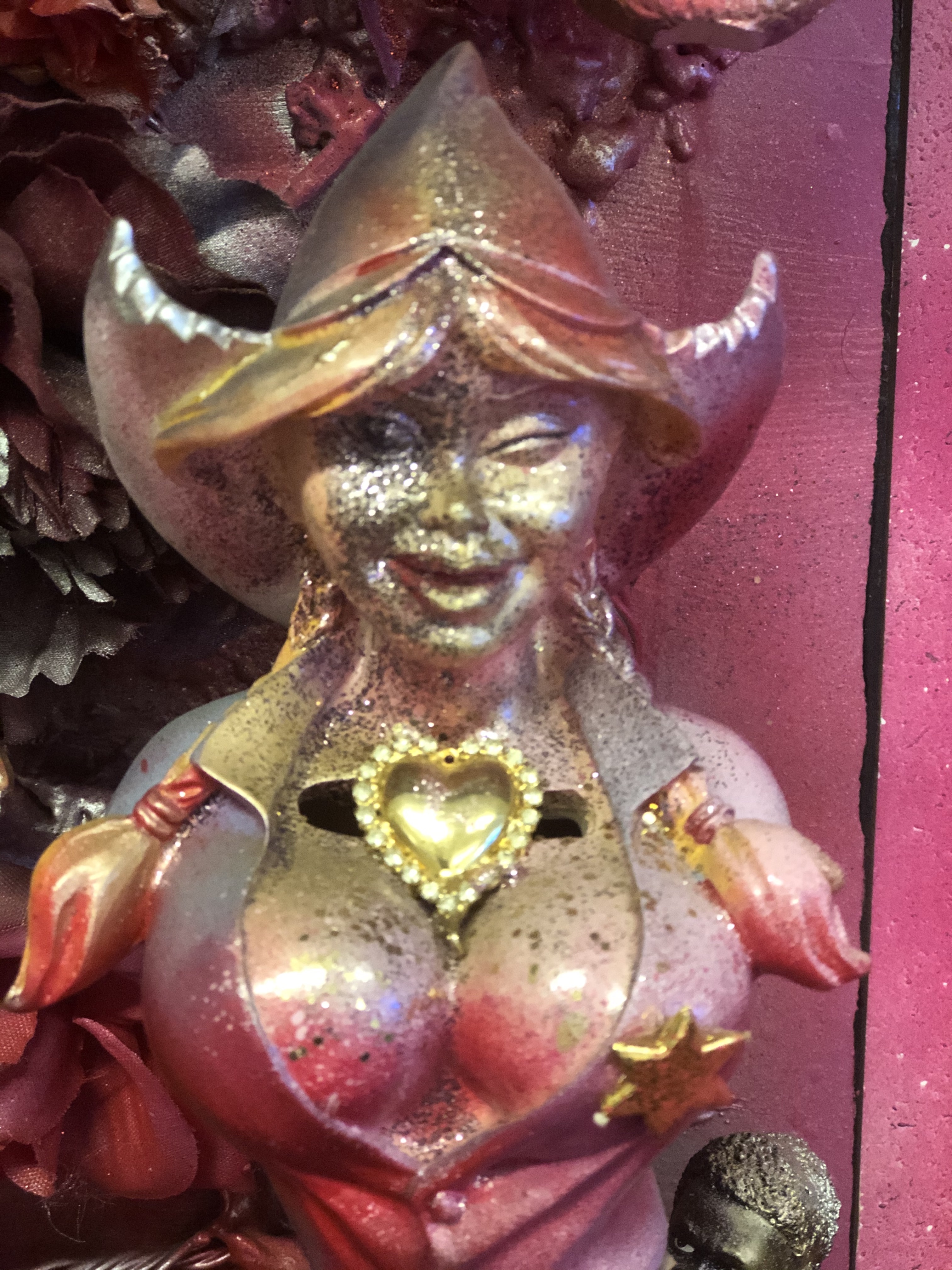 Het is eigentijdse kunst en maatschappelijkkritisch.. iets waar wij als autonome vrouwen dol op zijn! Frank van der Meijden maakt beeldverhalen met voorwerpen die een verleden hebben. En wat ons zo raakt is dat we een medestander zien in de strijd tegen verdeeldheid, rechtvaardigheid om autonoom te blijven. Om eigen keuzes te maken en de angst niet te laten regeren.